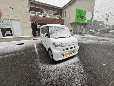 気温は低くても青空快晴で(風はすごかった)、雪が降るなんて考えられなかったのですが、