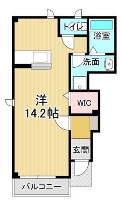 【スタッフからのイチオシポイント!】メゾンシャモニーA14.2帖の広々解放感たっぷりのワンルーム。1階角部屋。バストイレ別、室内洗濯機置場、エアコン、照明、温水洗浄便座付き。ストーンと抜けた感じの広さが魅力です。
