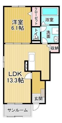 1LDK( LDK13.3畳/洋室6.1畳 ) |
